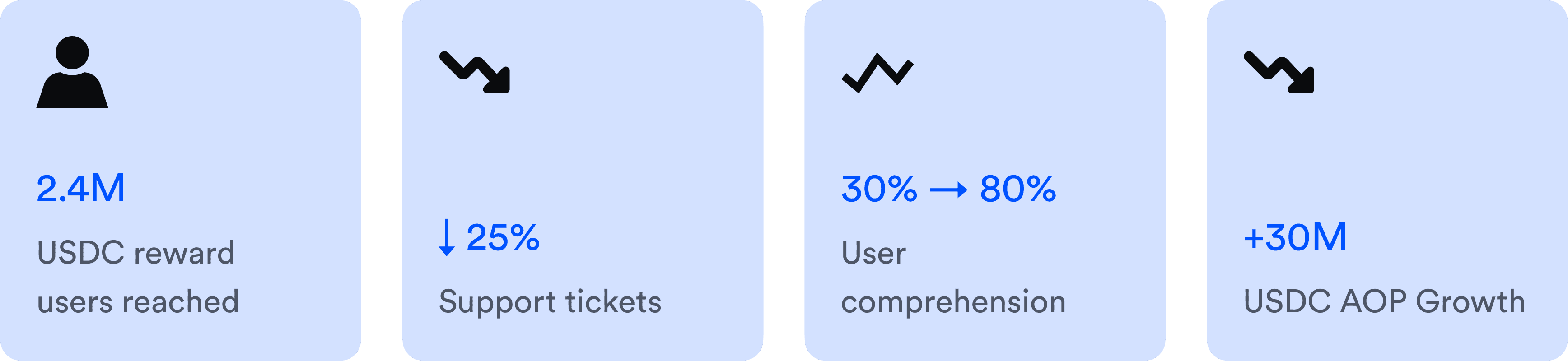 Redesigned end-to-end USDC Rewards to rebuild user trust and drive $30M in deposits