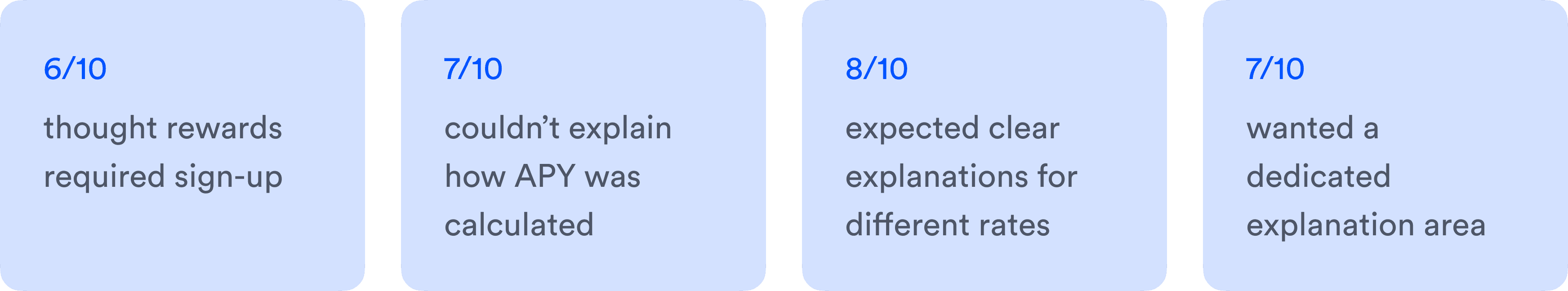 ➔ Before Prototypes: Only 3 out of 10 users could correctly explain the APY mechanics.