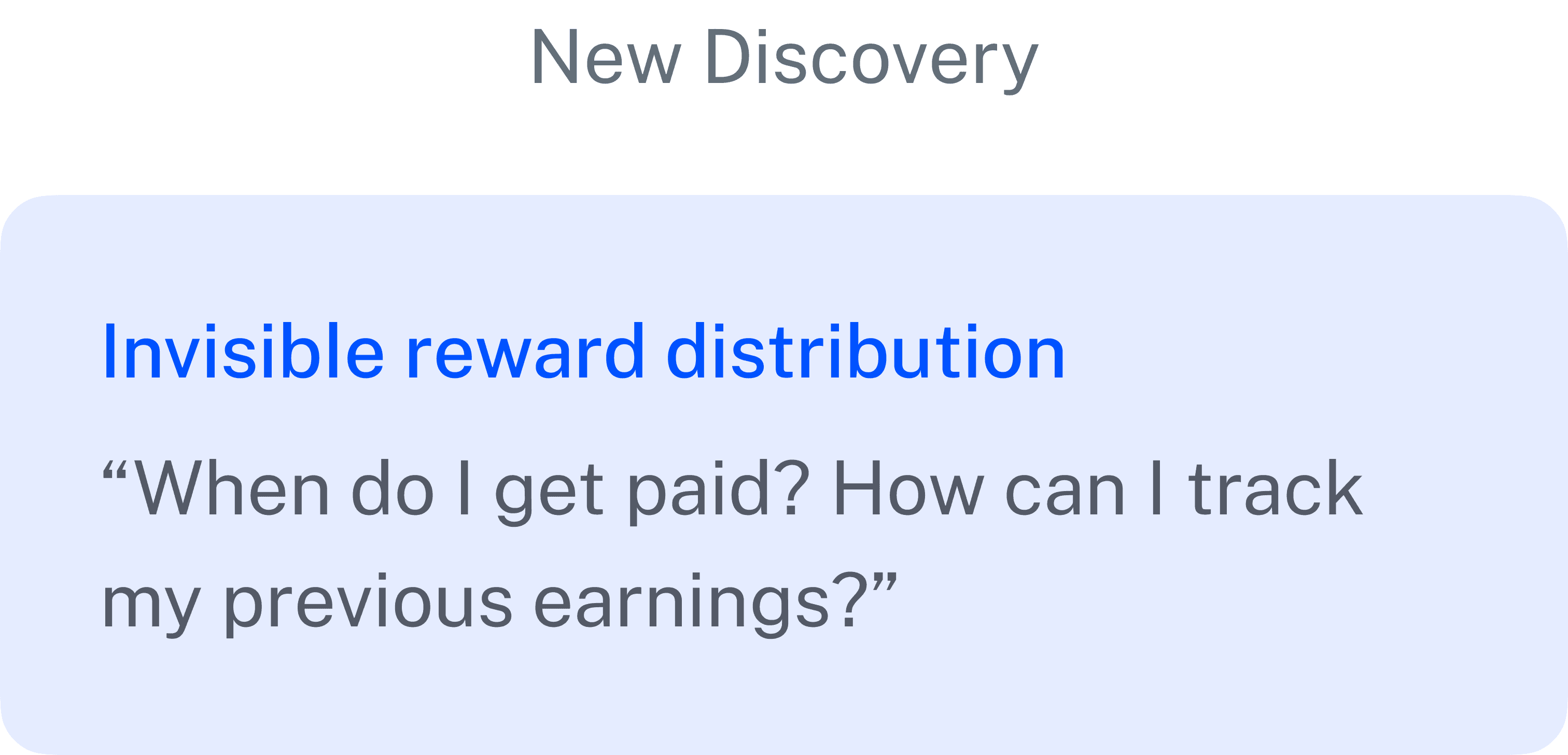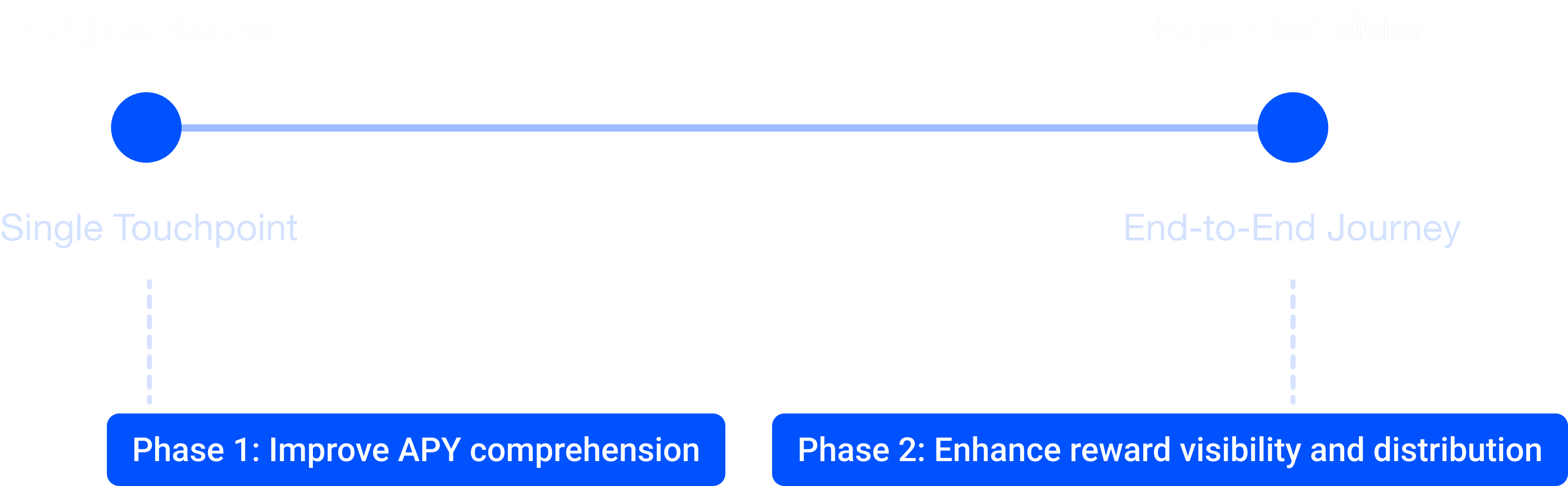 The obvious problem isn't always the most impactful. By digging deeper into support tickets, user interviews, and shadowing support calls, I discovered that user confusion was beyond unclear APY—it was about fundamentally lacking trust in how rewards were communicated. Addressing the real issue turned user frustration into confidence.